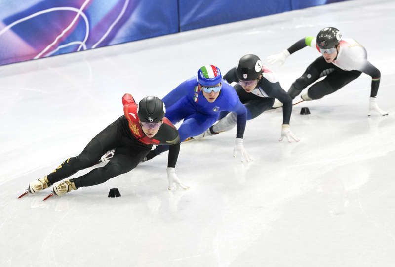 刘少昂(左一)晋级男人1000米四分之一决赛