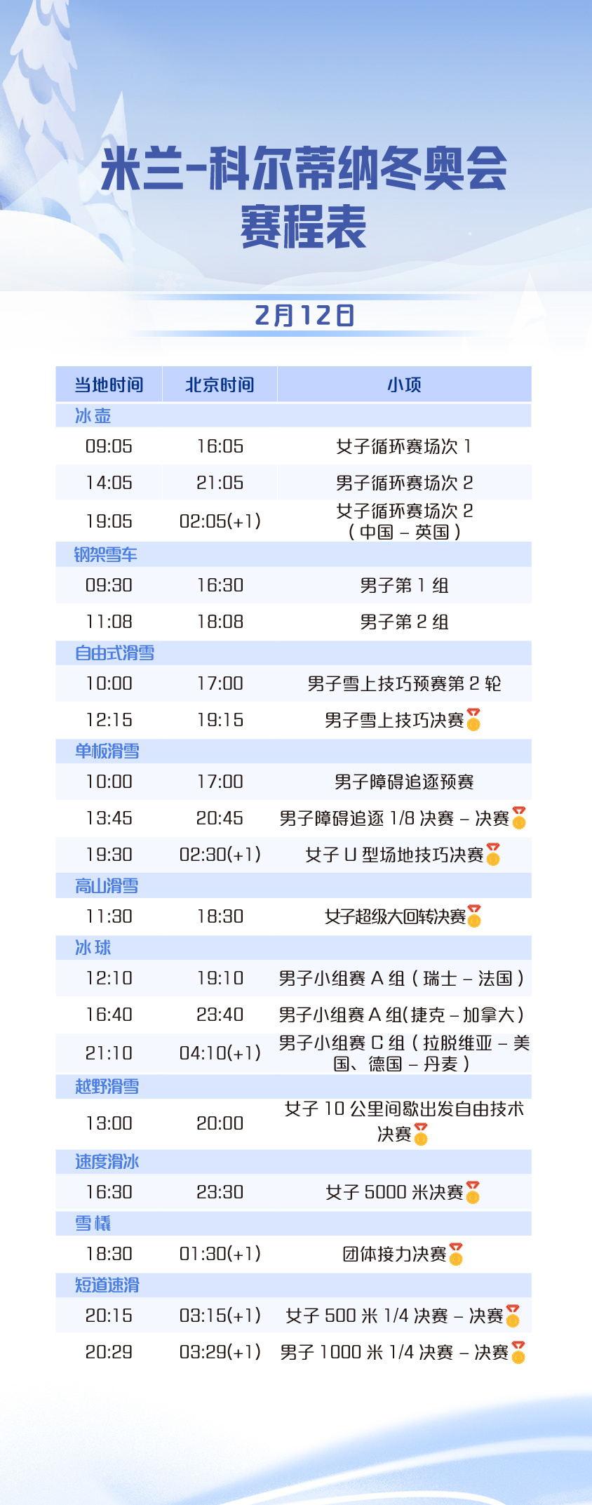 米兰冬奥会今天产生9枚金牌,中国队将亮相多场决赛,并在短谈速滑、单板滑雪女子U型场面手段等模样冲击奖牌。
