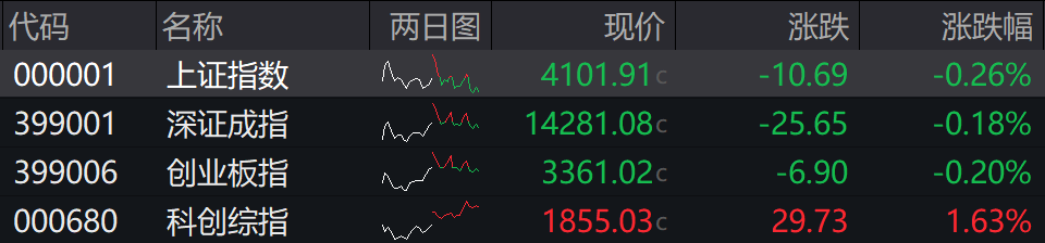 左右午盘,沪指跌0.22%,深成指跌0.1%,创业板指跌0.01%,科创综指涨0.86%